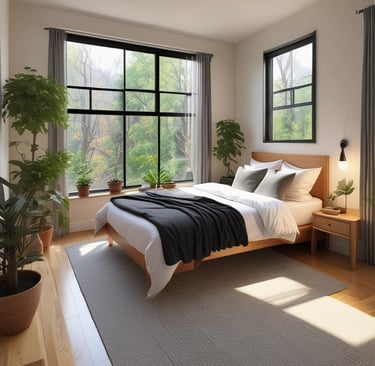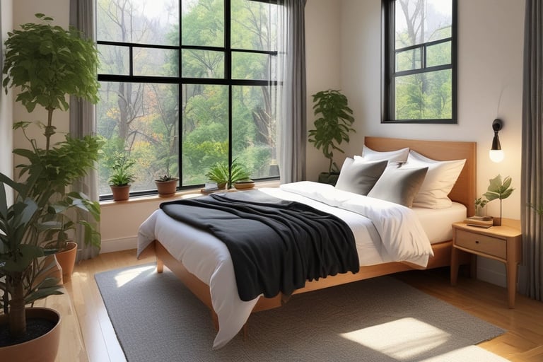 Private Room, ensuite, with balcony, closet, work table, and a beautiful garden view.